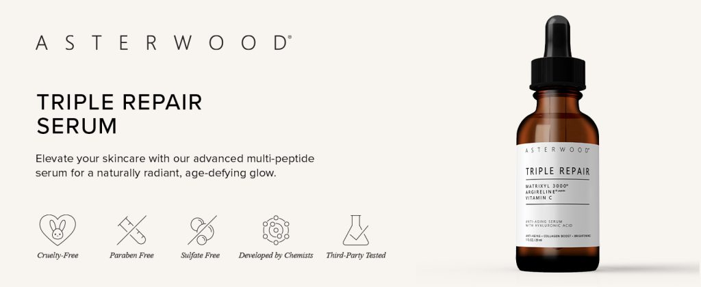 Asterwood Triple Repair Matrixyl 3000 + Argireline + Hyaluronic Acid + Vitamin C Serum for Face – Anti-Aging, Collagen Boosting, Hydrating – Fragrance-Free – 1 Fl Oz